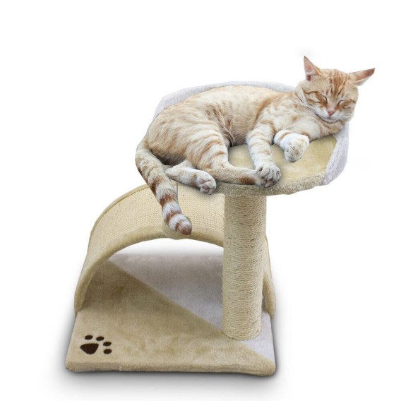 DRAPAK DLA KOTA HAMAK+BUDKA BIAŁO BEŻOWY DRZEWKO MINI + SŁUPEK SIZALOWY