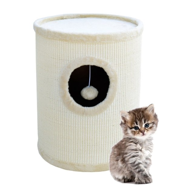 Drapak jest doskonałą kryjówką i miejscem do zabawy dla Państwa kotka. Wykończenie z miękkiego pluszu zapewni pupilowi komfortowy wypoczynek a pompon na sznurku nie pozwoli mu się nudzić.