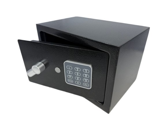 Nasz sejf to niezawodne rozwiązanie dla bezpieczeństwa Twoich cennych przedmiotów. Wyposażony w podwójny system zamykania, umożliwia otwarcie zarówno za pomocą kodu szyfrowego, jak i klucza zapasowego, co zapewnia dodatkowe bezpieczeństwo i wygodę użytkowania. Solidna, stalowa konstrukcja gwarantuje wysoką odporność na uszkodzenia oraz próby włamania, chroniąc Twoje wartościowe rzeczy. Wnętrze sejfu zostało wyściełane ochronnym filcem, który zabezpiecza przechowywane przedmioty przed zarysowaniami i uszkodzeniami. Dla łatwego montażu, sejf posiada gotowe otwory do mocowania do ściany lub podłoża, co zapewnia stabilność i bezpieczeństwo. Nowoczesny, elegancki design w czarnym kolorze sprawia, że sejf doskonale wpisuje się w każde wnętrze, łącząc funkcjonalność z estetyką.