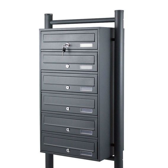 Elegancka stalowa skrzynka pocztowa 6 wrzutów Grafit malowana proszkowo, stojąca, z zestawem montażowym do bloków