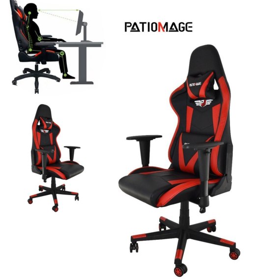 FOTEL DLA GRACZA GAMINGOWY OBROTOWY CZARNO-CZERWONY PATIOMAGE