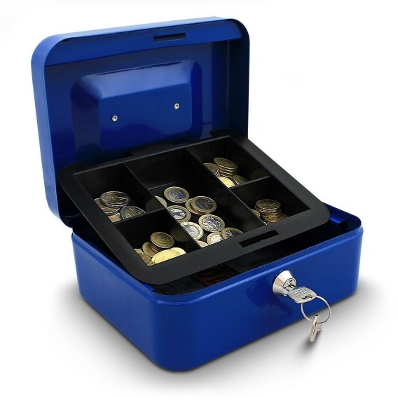 KASETKA NA PIENIĄDZE 20 CM BITUXX NIEBIESKA ZAMYKANA NA KLUCZ