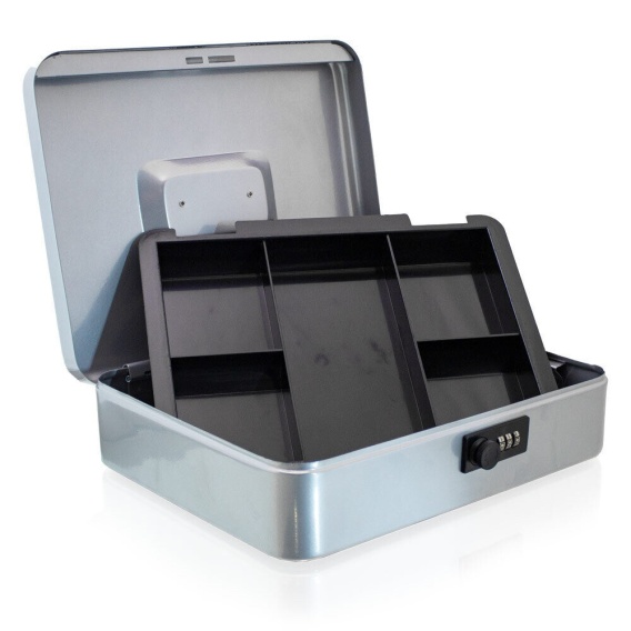 • Zabezpieczenie zawartości: dzięki solidnej konstrukcji i zamkowi szyfrowemu kasetka zapewnia podstawowy poziom ochrony przed nieautoryzowanym dostępem.