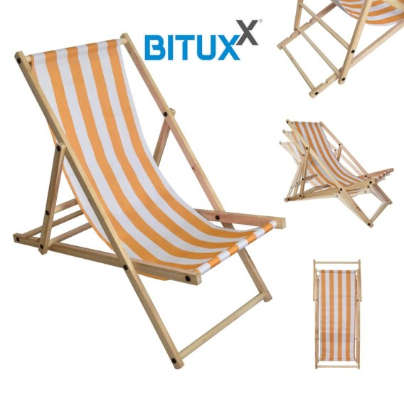 LEŻAK DREWNIANY OGRODOWY SKŁADANY Z REGULACJĄ WYSOKOŚCI ŻÓŁTO-BIAŁE PASY