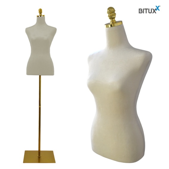 Manekin krawiecki Tors regulowana wysokość beżowy Ecru Elegancki złoty stojak