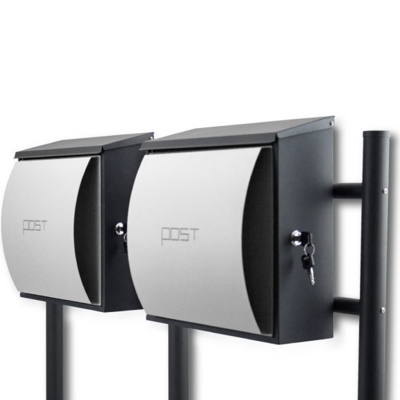 Skrzynka pocztowa jest zamykana i duża Pojemność nadaje się również dla firm. Dzięki dużemu otworowi do wymiarowania skrzynka pocztowa jest optymalnie obsługiwana. Dostawa obejmuje 3 stojaki, 2 poprzeczne rozpórki, sprzęt montażowy i dwa klucze. sprzęt - Design letterbox metal, ciemnoszary /jasnoszary lakierowany proszkowo
