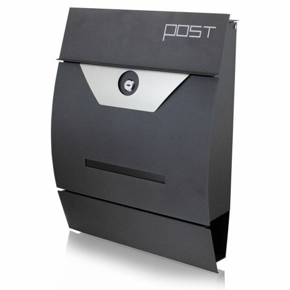 Nowoczesna skrzynka pocztowa z gazetnikiem, w kolorze antracytowego grafitu.