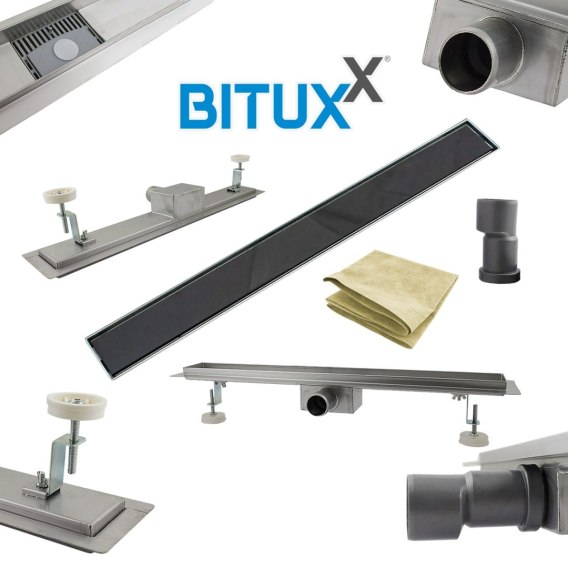 ODPŁYW LINIOWY Z CZARNEGO SZKŁA 60CM KORYTKO WPUST + SYFON GLASS SCHWARZ