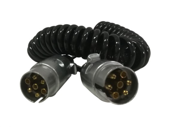 Wysokiej jakości złącze elektryczne przyczepy 7 pin 12V. Długość maksymalna kabla po rozciągnięciu do 2,60m. Jest wodoodporny, a miedziane wtyki złącza są okrągłe by ułatwić złączanie i rozłączanie. Pozwala to też zminimalizować spadki napięcia.