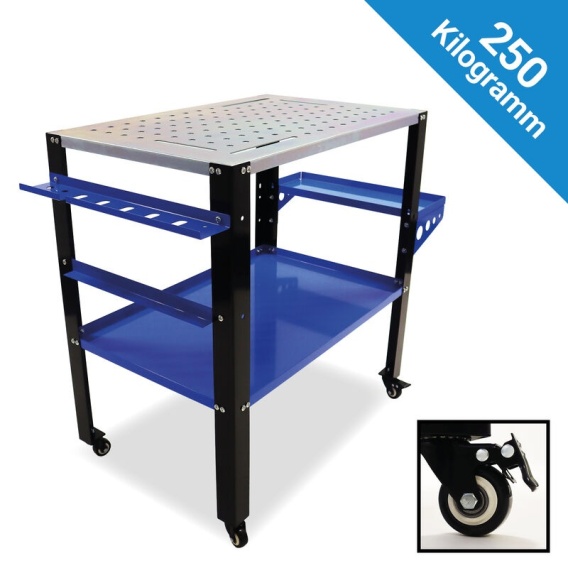 Stół został zaprojektowany tak, aby wytrzymać obciążenia nawet do 250 kg, co czyni go doskonałym wyborem do spawania, montażu, cięcia i innych wymagających prac warsztatowych. Solidna konstrukcja stalowa zapewnia stabilność i bezpieczeństwo nawet przy intensywnym użytkowaniu.