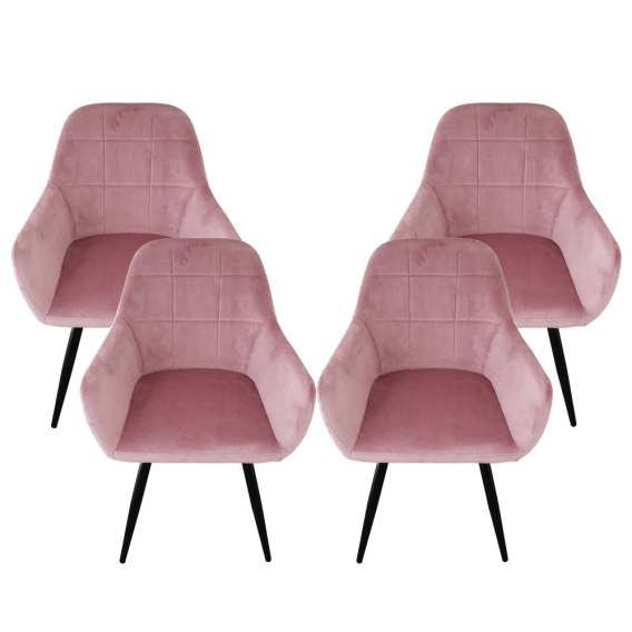 RÓŻOWE KRZESŁA WELUROWE WYTRZYMAŁE KOMPLET 4 SZTUKI NOWOCZESNE STYLOWE