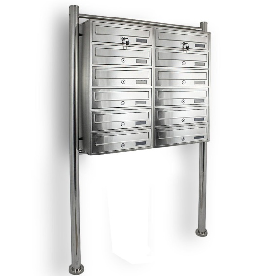 Skrzynka Lokatorska Duża 12 wrzutów INOX szczotkowana na stojaku Zewnętrzna