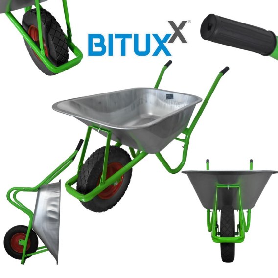 Taczka wykonana z najlepszej jakości dostępnych materiałów, zatwierdzona przez niemiecka markę BITUXX.