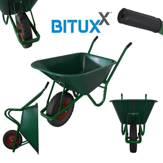 Taczka ogrodowa 100 litrów pojemności pełne koło z ośką solidna misa PCV wytrzymała taczka ogrodowa