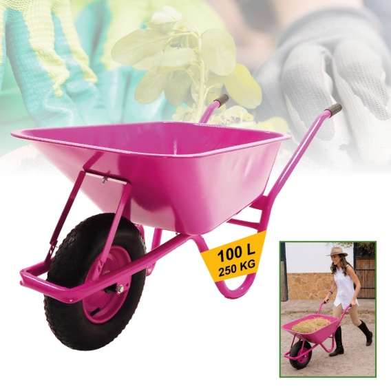 Taczka ogrodowa Wózek 100l z kołem pompowanym RÓŻOWA do 250kg Ocynkowana