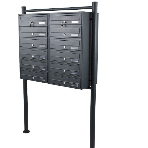 Wolnostojąca Skrzynka Lokatorska Zewnętrzna 12 wrzutów do bloków i do wspólnot Grafitowa