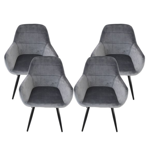 Dzięki temu kompletowi krzeseł twoje wnętrze nie pozostanie niezauważone! Każde krzesło wykonane zostało z najlepszej jakości weluru oraz metalu, aby wygoda i bezpieczeństwo szły razem w parze. Stonowany kolor świetnie rozświetli każde pomieszczenie, a każda popołudniowa herbata ze znajomymi stanie się o wiele przyjemniejsza. Stalowe nogi malowane proszkowo zapewniają duży udźwig oraz stabilność. Na tej aukcji zakupić można komplet czterech krzeseł.