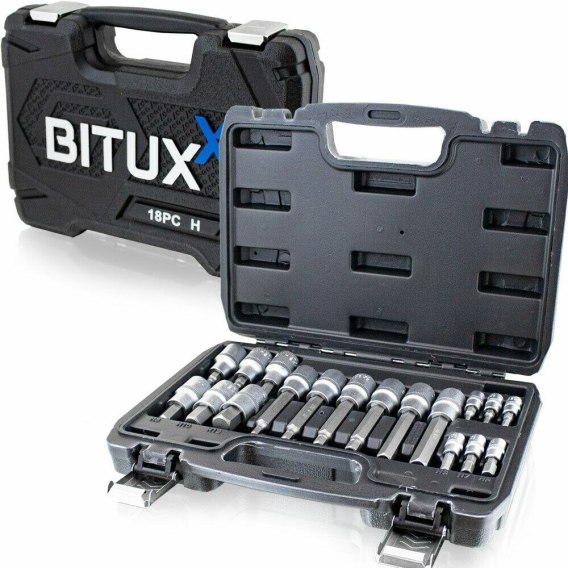 Zestaw składa się z 18-bitowych wtyczek nakrętek wykonanych z wytrzymałej i trwałej stali chromowo-wanadowej. Idealny zestaw dla ambitnych złotych rączek, w zestawie poręczna i praktyczna skrzynka na narzędzia