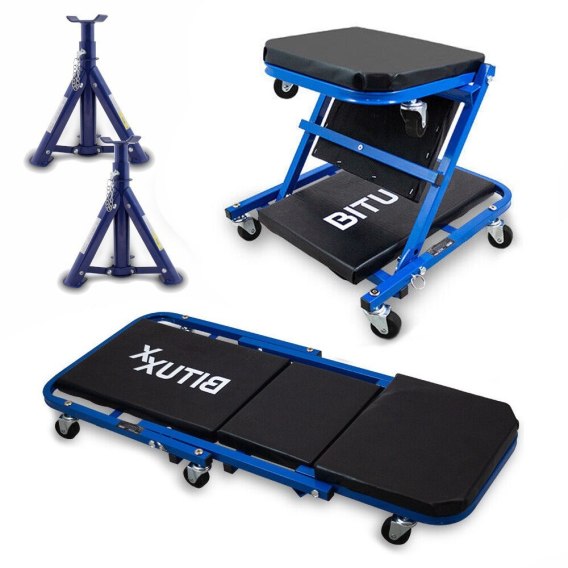 ZESTAW WARSZTATOWY LEŻANKA MOBILNA 2W1 I ZESTAW KOBYŁEK WARSZTATOWYCH 3T