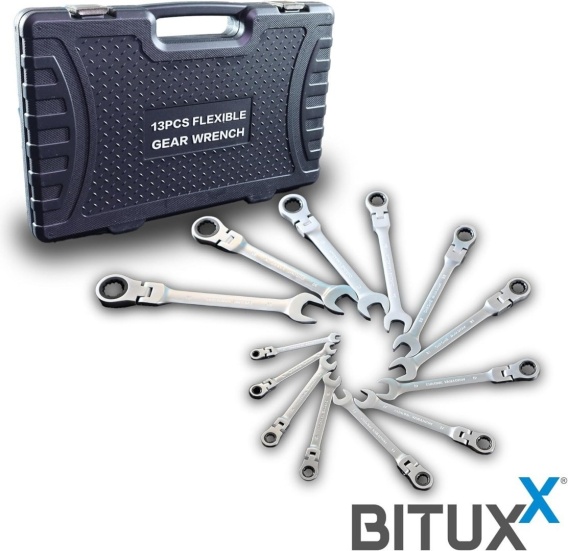 Bituxx zestaw 13-częściowych elastycznych kluczy oczkowych z grzechotką - wysokiej jakości, solidny i elastyczny w użyciu