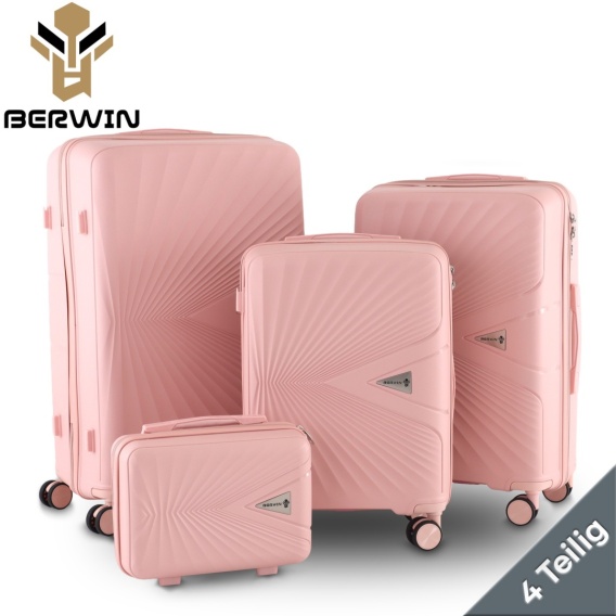 Model: BERWIN Zestaw 4 walizek w kolorze Matowy Róż, z twardego i trwałego materiału ABS.