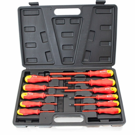 Składa się z izolowanych wkrętaków płaskich i krzyżakowych. Uchwyty są ergonomiczne przez co lepiej leżą w dłoni.
