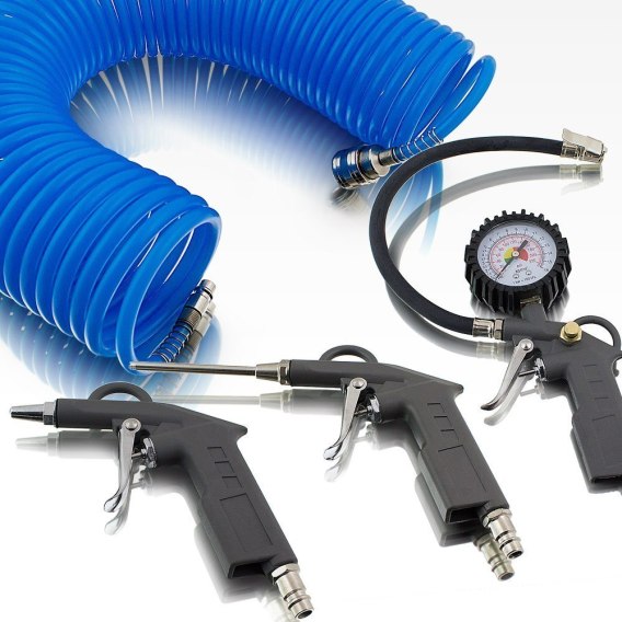 Zestaw akcesoriów do kompresora 4 el. – wąż 15 m, manometr, pistolety z długą i krótką dyszą