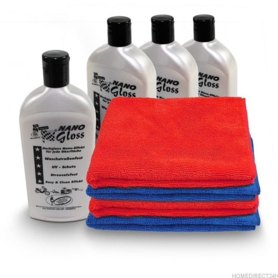 Ściereczki z mikrofibry charakteryzują się wysoką chłonnością, miękkością oraz bezpieczeństwem dla lakieru – nie rysują powierzchni i skutecznie zbierają kurz, wodę oraz resztki preparatów czyszczących. Preparat Nano Gloss tworzy delikatną warstwę ochronną, podkreśla kolor oraz zapewnia efekt świeżo wypolerowanej powierzchni.