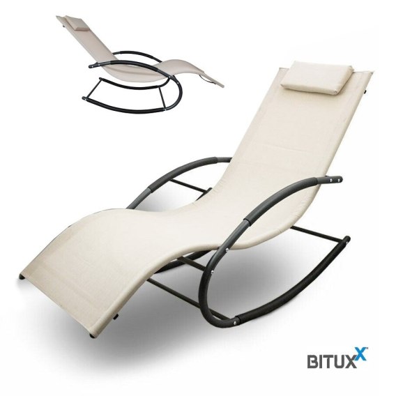 leżak ogrodowy materiałowy Bujany Bituxx na taras beżowy